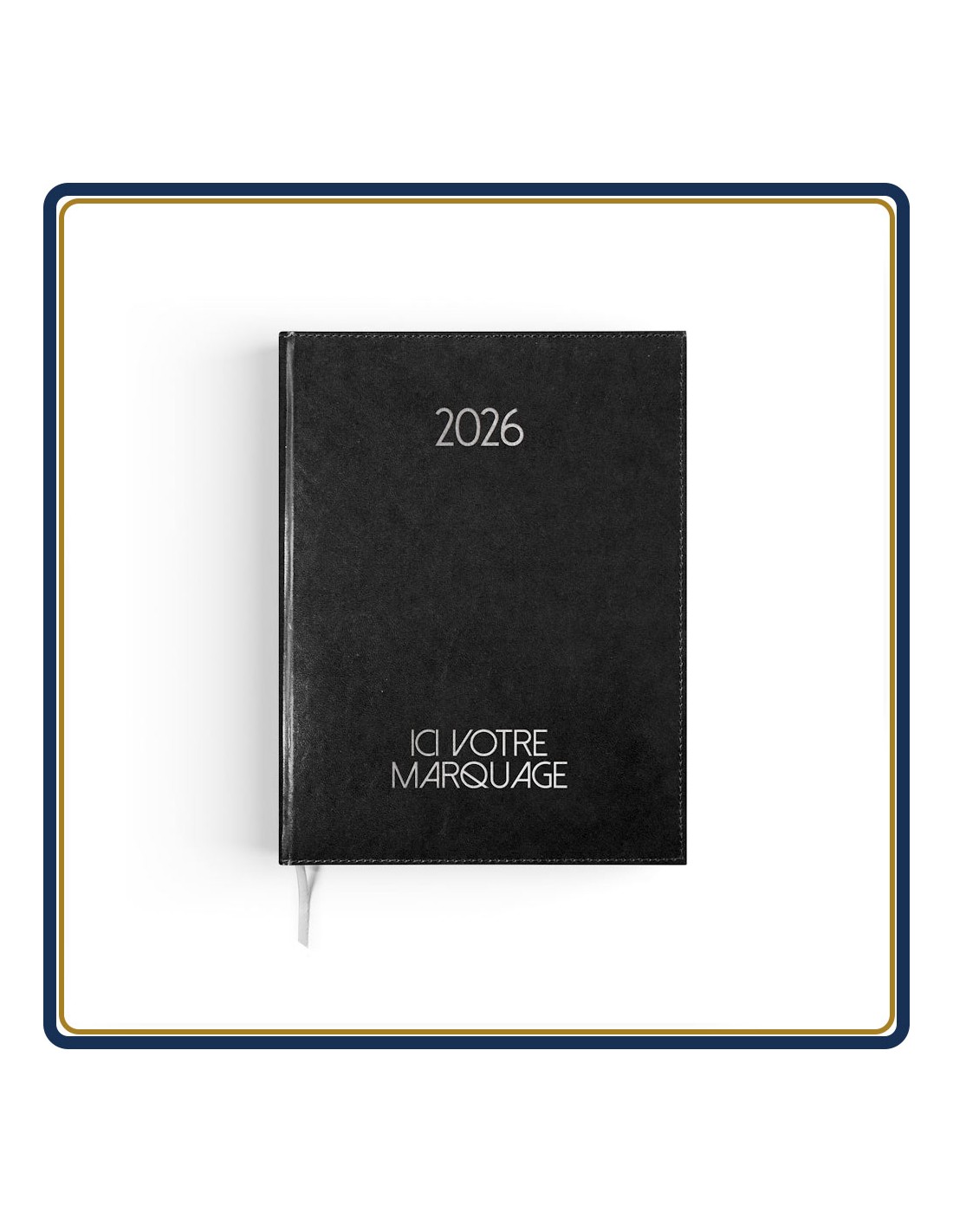 Agenda semainier Paris 2026, agenda publicitaire, de format bureau, avec une semaine entière sur une double page. Pourvu d'une couverture emboîtée à effet cuir rigide "Domino", cet agenda propose une finition haut de gamme et est disponible en 4 coloris. Votre impression publicitaire sera réalisée sur la 1ère de couverture, par transfert à chaud, en une couleur à choisir dans le nuancier proposé. Outre la grille calendaire internationale disposée sur deux pages par semaine, vous trouverez à l'intérieur de l'agenda Paris un atlas complet et des pages informatives sur différents sujets. Sur option, il est possible d'insérer jusqu'à 16 pages publicitaires en début d'agenda (Sur devis). Avec l’agenda semainier Paris, vous toucherez assurément vos cibles et attirerez positivement leur attention sur votre société.