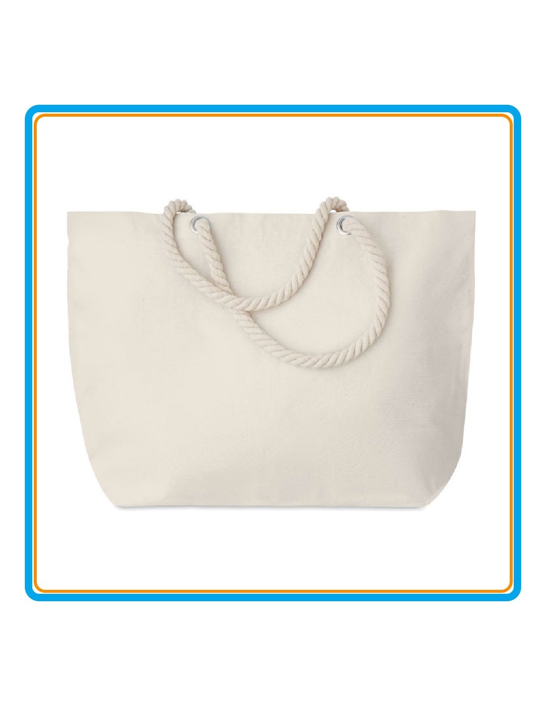 Sac de plage Corde ou sac shopping fabriqué en coton 220 g/m2 avec les sangles en corde épaisse. Une gamme de4 couleurs est disponible pour être au plus près de votre charte graphique.