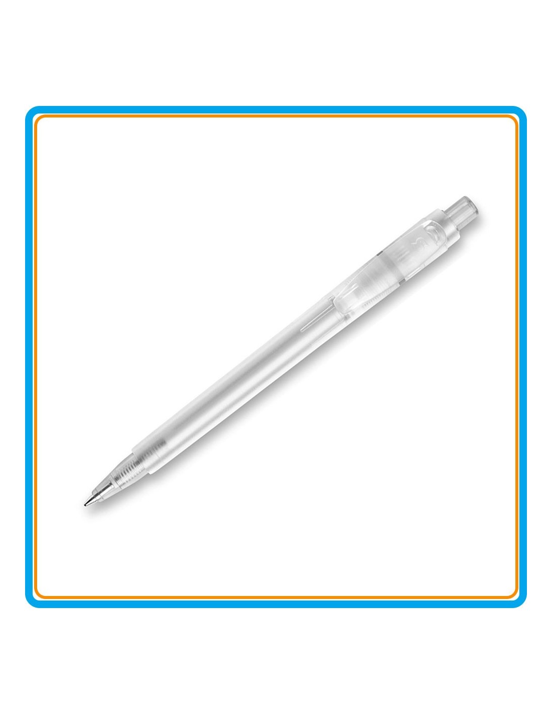 Ce stylo bille publicitaire réputé bénéficie d'un restylage du clip qui lui apporte un look plus moderne que ses grands frères de la gamme Baron classique. Ce côté jeune et dynamique est valorisé par la finition satinée frosty Ice du corps et du clip ainsi que par leur association avec des coloris transparents pour la pointe et le bouton poussoir.