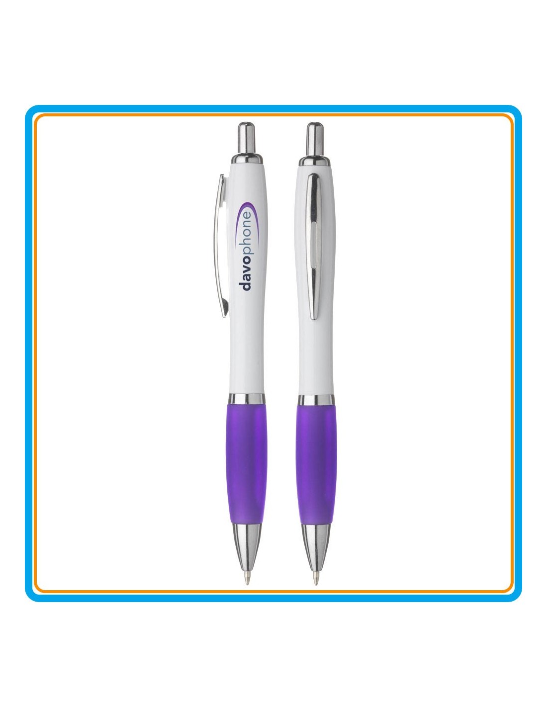 Le stylo bille Athos White propose pour sa finition une association d'un corps en ABS blanc opaque avec un grip de préhension antidérapant coloré. Les attributs de ce stylo publicitaire destiné à la grande diffusion sont un clip métal, d'une part, et des éléments de couleur chromée, d'autre part.