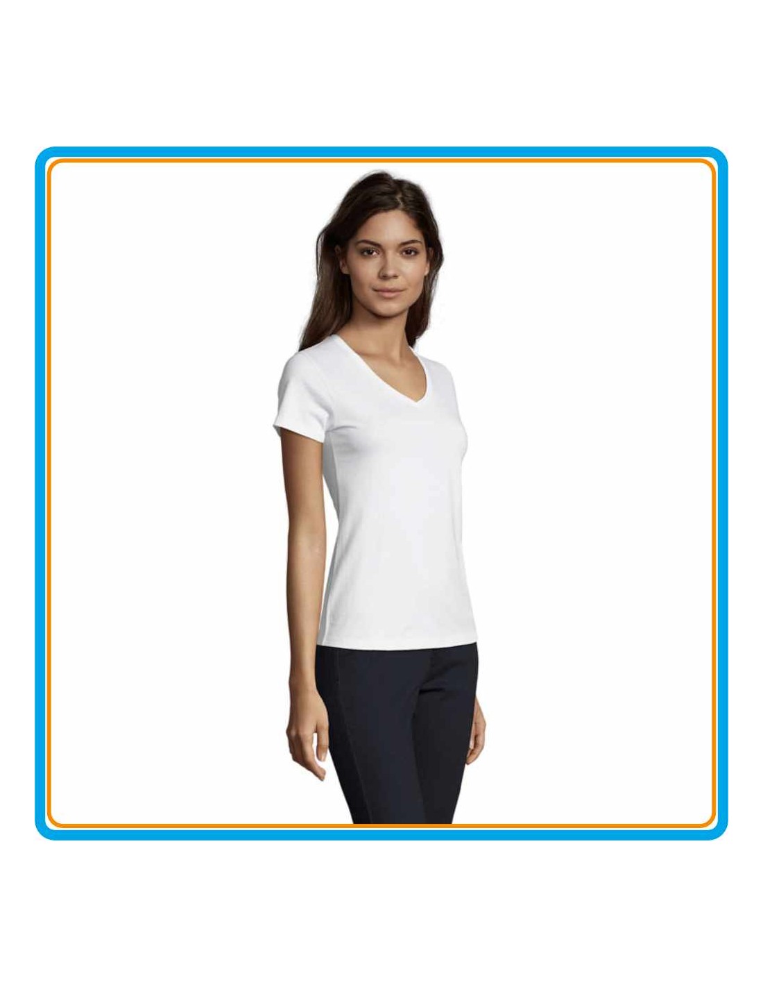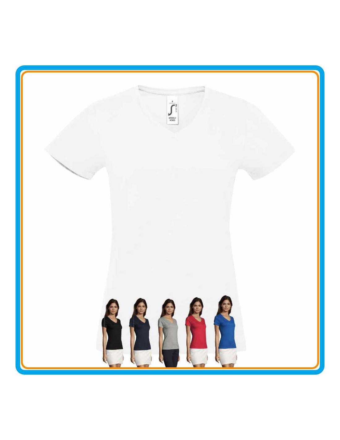 Tee-shirt 190 Imperial Femme V est un tee-shirt publicitaire de coupe féminine avec un col en V, en conception coupé cousu, fabriqué par Sol's®, la marque bien connue du textile publicitaire. Ce tee-shirt 190 Imperial Femme V, conviendra à tous ceux qui recherchent un tee-shirt aux belles finitions, ciblé sur une population féminine. Ce modèle femme en col V est disponible en six coloris et 5 tailles.