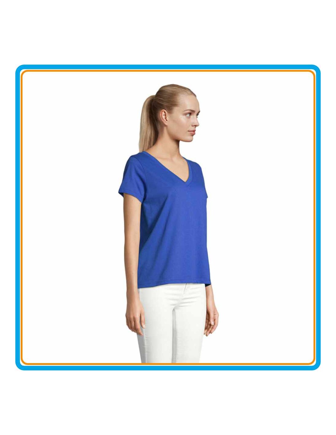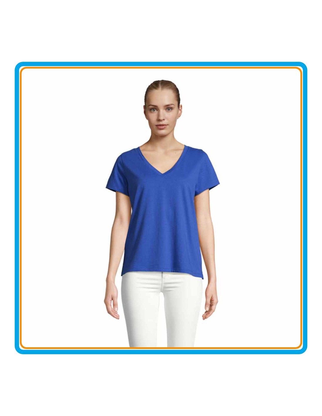 100% COTON - LAVAGE 40° - TEE-SHIRT 150 g/m² - GAMME DE 8 COLORIS - 6 TAILLES - COUPE FÉMININE AVEC COL EN V