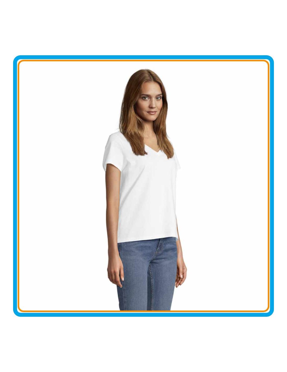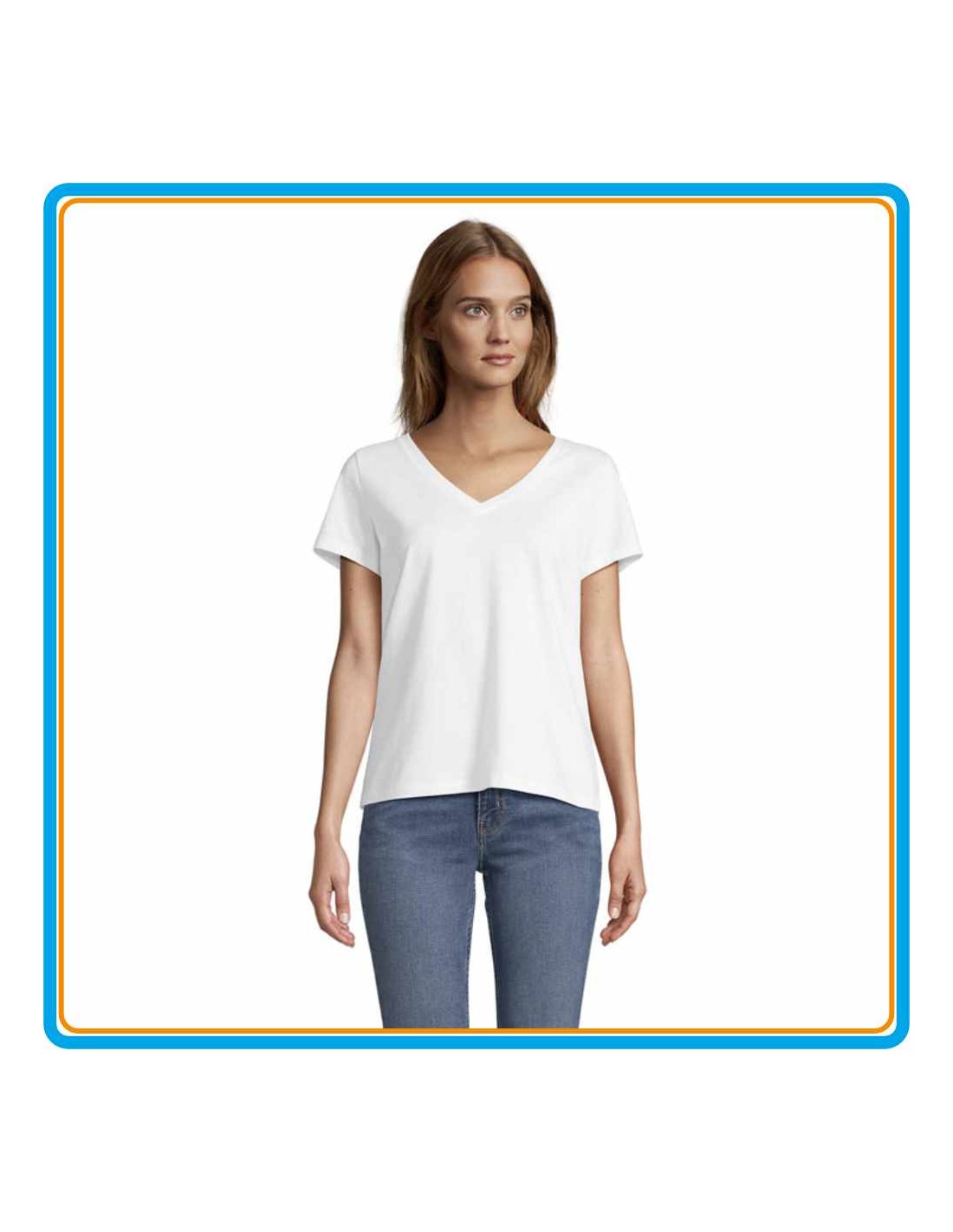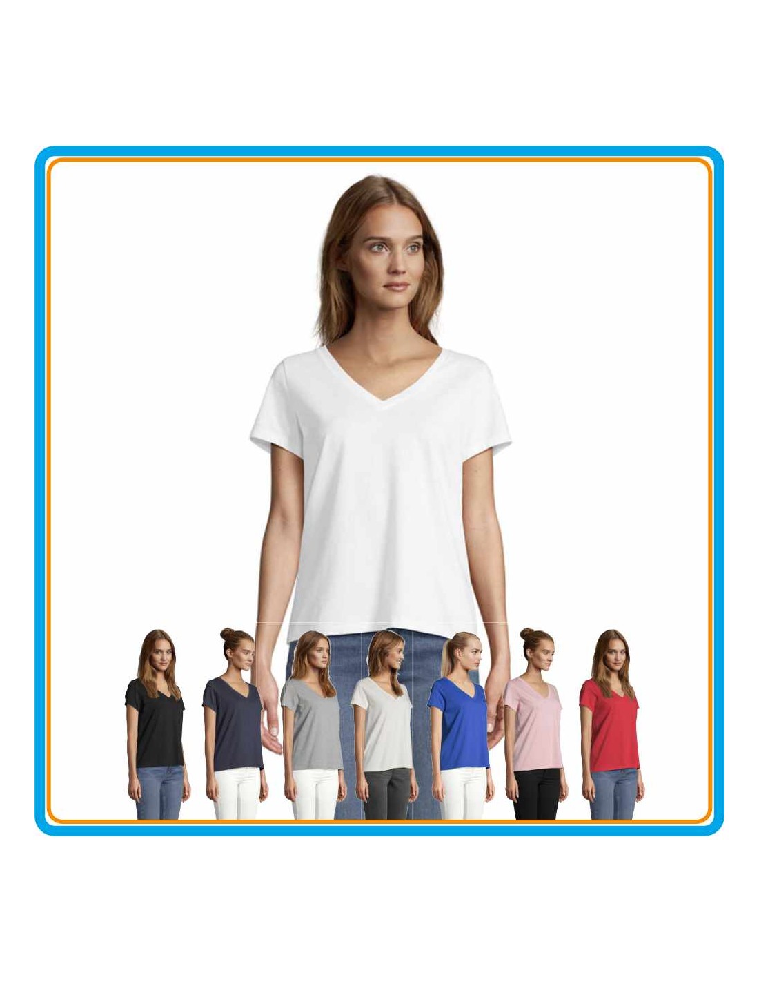 100% COTON - LAVAGE 40° - TEE-SHIRT 150 g/m² - GAMME DE 8 COLORIS - 6 TAILLES - COUPE FÉMININE AVEC COL EN V